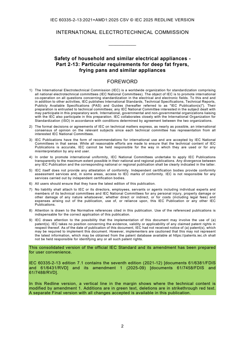 REDLINE IEC 60335-2-13:2021 CMV - Household and similar electrical appliances - Safety - Part 2-13: Particular requirements for deep fat fryers, frying pans and similar appliances Released:12/14/2021 Isbn:9782832240564