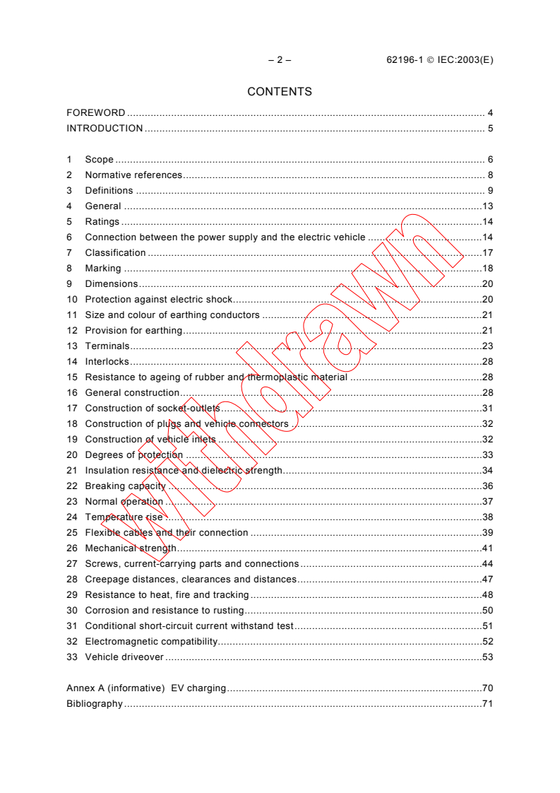This part of IEC 62196 is applicable to plugs, socket-outlets, connectors, inlets and cable assemblies for electric vehicles, intended for use in conductive charging systems which incorporate control means, with a rated operating voltage not exceeding: 690 V a.c., 50 - 60 Hz, at a rated current not exceeding 250 A; 600 V d.c., at a rated current not exceeding 400 A.