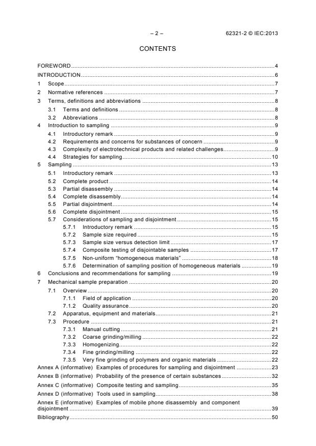 IEC 62321-2:2013 forms part of the broader IEC 62321 series, which addresses the Determination of certain substances in electrotechnical products. Related parts include:
