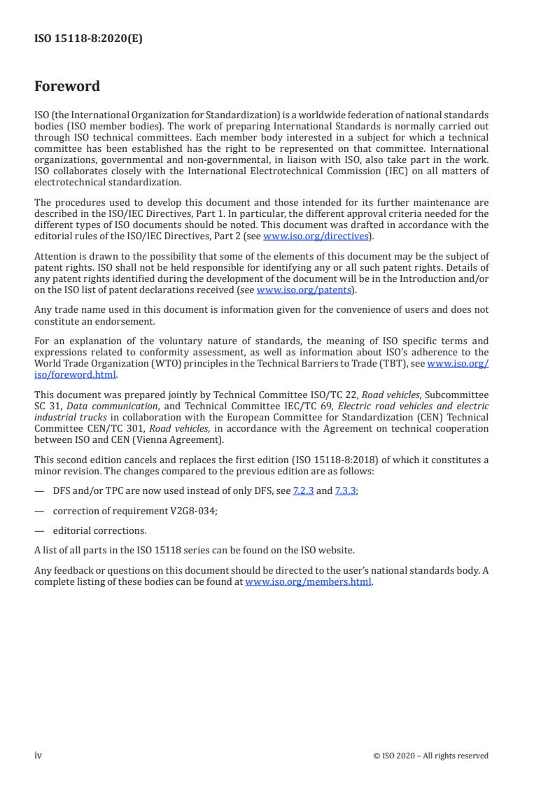 ISO 15118-8:2020 is a standard published by the International Electrotechnical Commission (IEC). Its full title is "Road vehicles - Vehicle to grid communication interface - Part 8: Physical layer and data link layer requirements for wireless communication". This standard covers: This document specifies the requirements of the physical and data link layer of a wireless High Level Communication (HLC) between Electric Vehicles (EV) and the Electric Vehicle Supply Equipment (EVSE). The wireless communication technology is used as an alternative to the wired communication technology as defined in ISO 15118‑3. It covers the overall information exchange between all actors involved in the electrical energy exchange. ISO 15118 (all parts) are applicable for conductive charging as well as Wireless Power Transfer (WPT). For conductive charging, only EVSEs compliant with "IEC 61851‑1 modes 3 and 4" and supporting HLC are covered by this document. For WPT, charging sites according to IEC 61980 (all parts) and vehicles according to ISO 19363 are covered by this document.