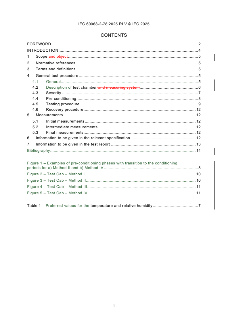 IEC 60068-2-78:2025 is a standard published by the International Electrotechnical Commission (IEC). Its full title is "Environmental testing - Part 2-78: Tests - Test Cab: Damp heat, steady state". This standard covers: IEC 60068-2-78:2025 establishes a test method for determining the ability of components or equipment to withstand transportation, storage and use under conditions of high humidity. The object of this document is to investigate the effect of high humidity at constant temperature without condensation on a specimen over a specified period. It is applicable to small equipment or components as well as large equipment and can be applied to both heat-dissipating and non-heat-dissipating specimens. This third edition cancels and replaces the second edition published in 2012. This edition constitutes a technical revision. This edition includes the following significant technical changes with respect to the previous edition: a) revision of the requirements for the test chamber; b) revision of the severities and including the dew point temperatures; c) change of the temperature tolerances of the test to limits; d) inclusion of a specified preconditioning procedure; e) inclusion of a new figure for clarification purposes; f) revision of standardized requirements for the test report.