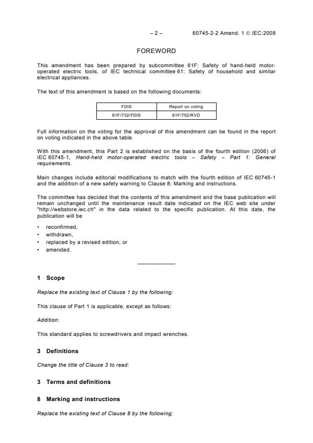 Amendment 1 - Hand-held motor-operated electric tools - Safety - Part 2-2: Particular requirements for screwdrivers and impact wrenches