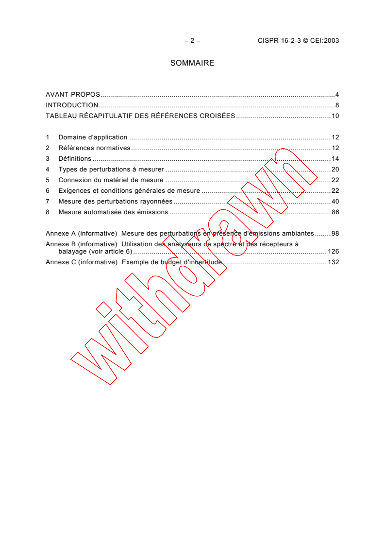 La présente partie de la CISPR 16 est une norme fondamentale qui spécifie la méthode de mesure du champ perturbateur rayonné, dans la gamme de fréquences de 9 kHz à 18 GHz. La publication CISPR 16-2 a été réorganisée en 4 parties, dans le but de pouvoir gérer plus facilement son évolution et maintenance. Cette première édition de la CISPR 16-2-3, ainsi que les CISPR 16-2-1, CISPR 16-2-2 et CISPR 16-2-4, annule et remplace la seconde édition de la CISPR 16-2 publiée en 2003. Elle contient les articles en rapport avec la CISPR 16-2 sans modifications de leur contenu technique.