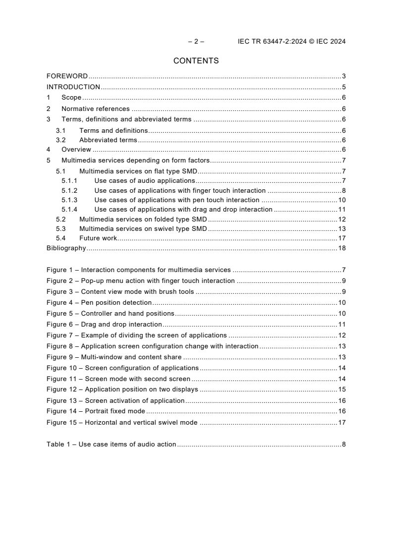 Keywords: IEC TR 63447-2, form factor, smart mobile devices, multimedia services, audio use cases, touch interaction, folded device, swivel device, SMD use cases.