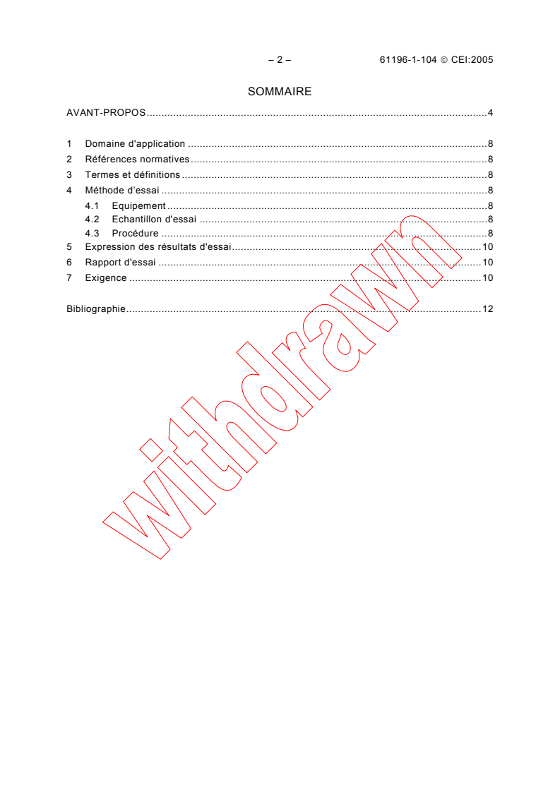 La Norme internationale CEI 61196-1-104 a été établie par le sous-comité 46A : Câbles
