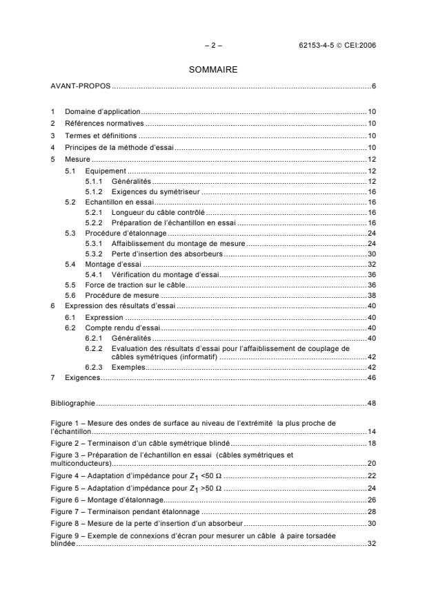 convient pour déterminer l'affaiblissement d'écran ou de couplage de câbles métalliques de communication dans la gamme de fréquences de 30 MHz à 1 000 MHz. Il s'agit d'une variante de la méthode de la pince d'injection de la CEI 62153-4-3 ou de la méthode triaxiale de la CEI/PAS 62338. Puisque le circuit externe de cette méthode de la pince absorbante n'est pas défini, les résultats des essais obtenus dans différents lieux et laboratoires peuvent varier de plus de ±6 dB.