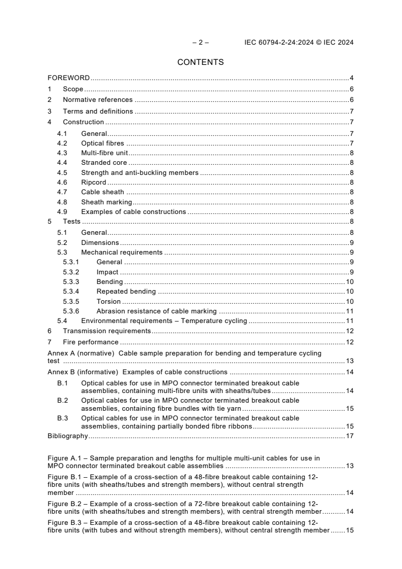Keywords: IEC 60794-2-24, optical fibre cables, MPO connector, indoor cables, breakout cable assemblies, multi-fibre unit cables, fibre optic standards, MPO breakout cables, IEC standards, fibre optic cable testing, indoor fibre infrastructure.