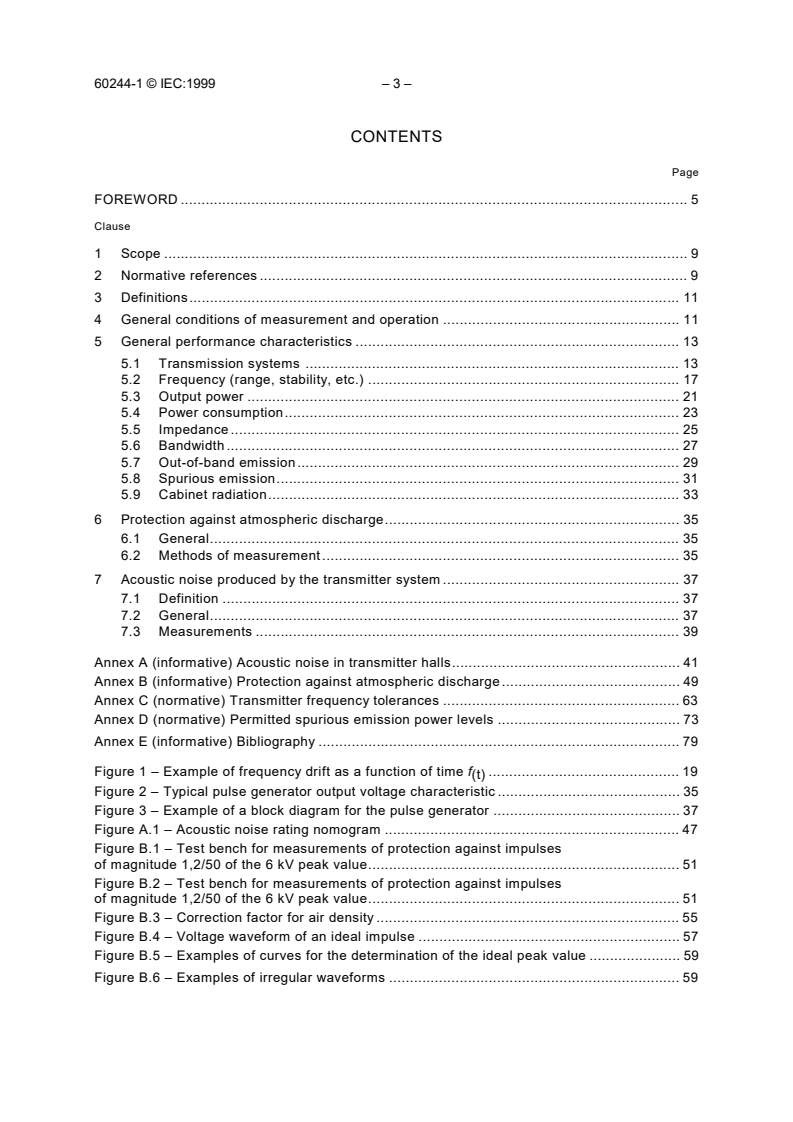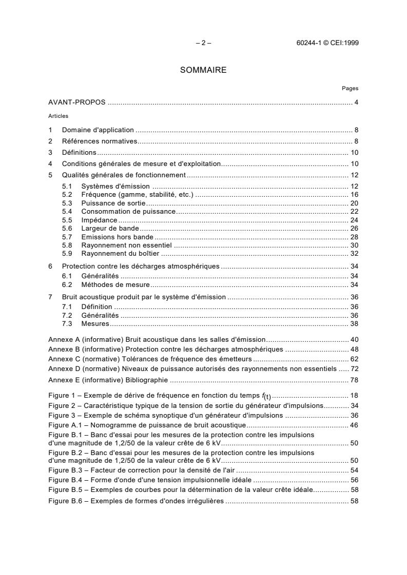 - Normative annexes covering frequency tolerances and permitted spurious emission levels, plus informative annexes on acoustic noise and atmospheric discharge tests.