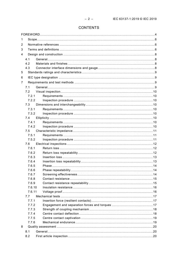 IEC 63137-1:2019 defines general requirements for standard test radio frequency (RF) connectors (grade 0), including terms and definitions, ratings and characteristics, general requirements, test methods, quality assessment procedures, and etc.