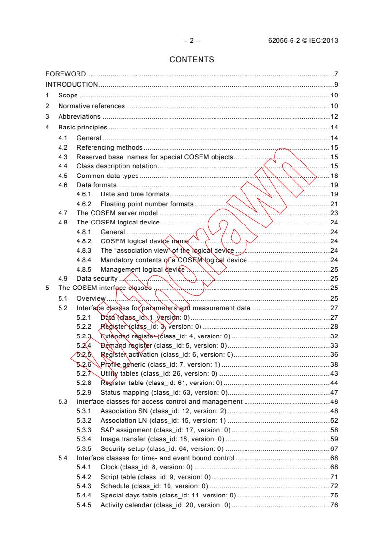IEC 62056-6-2:2013 specifies a model of a meter as it is seen through its communication interface(s). Generic building blocks are defined using object-oriented methods, in the form of interface classes to model meters from simple up to very complex functionality.