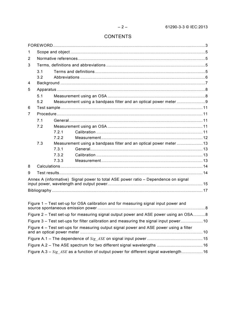 IEC 61290-3-3:2013 is a standard published by the International Electrotechnical Commission (IEC). Its full title is "Optical amplifiers - Test methods - Part 3-3: Noise figure parameters - Signal power to total ASE power ratio". This standard covers: IEC 61290-3-3:2013 applies to all commercially available single channel optical amplifiers (OAs), including OAs using optically pumped fibres (OFAs) based on either rare-earth doped fibres or on the Raman effect, semiconductor optical amplifier modules (SOA modules) and planar optical waveguide amplifiers (POWAs). More specifically, it applies to single channel OAs placed before optical receivers, where there are no optical bandpass filtering elements placed between the OA and the receiver. The object of this part of IEC 61290-3 is to establish uniform requirements for accurate and reliable measurement of the ratio of the signal output power to the total ASE power generated by the OA in the optical bandwidth of the receiver. This quantity is a measure of the spontaneous-spontaneous beat noise at the receiver, and is correlated to the spontaneous-spontaneous noise factor of the OA, Fsp-sp, as defined in IEC 61290-3 and IEC 61291-1. Keywords: single channel optical amplifiers (OAs), semiconductor optical amplifier modules (SOA modules), planar optical waveguide amplifiers (POWAs), measurement of the ratio of the signal output power to the total ASE power generated by the OA in the optical bandwidth of the receiver