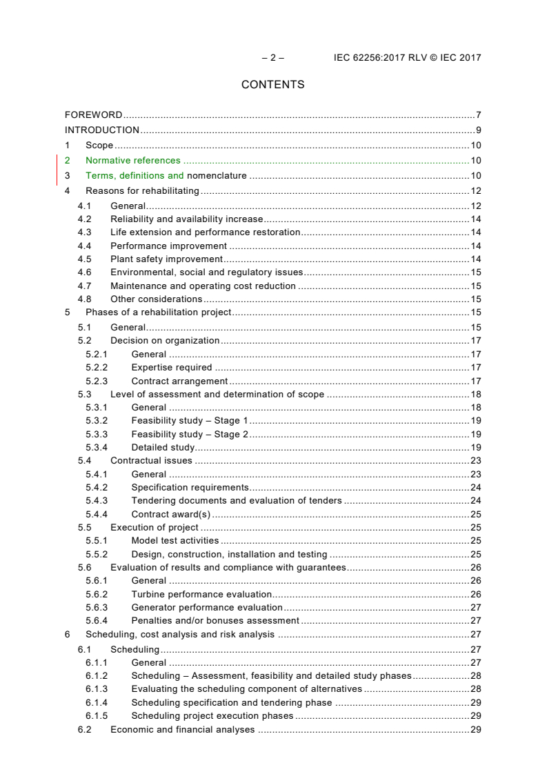 IEC 62256:2017 is a standard published by the International Electrotechnical Commission (IEC). Its full title is "Hydraulic turbines, storage pumps and pump-turbines - Rehabilitation and performance improvement". This standard covers: IEC 62256:2017 covers turbines, storage pumps and pump-turbines of all sizes and of the following types: Francis; Kaplan; propeller; Pelton (turbines only) and bulb turbines. This document also identifies without detailed discussion, other powerhouse equipment that could affect or be affected by a turbine, storage pump, or pump-turbine rehabilitation. The object of this document is to assist in identifying, evaluating and executing rehabilitation and performance improvement projects for hydraulic turbines, storage pumps and pump-turbines. This document can be used by owners, consultants, and suppliers to define: needs and economics for rehabilitation and performance improvement; scope of work; specifications and evaluation of results. This document is intended to be: an aid in the decision process; an extensive source of information on rehabilitation; an identification of the key milestones in the rehabilitation process; and identification of the points to be addressed in the decision processes. This document is not intended to be a detailed engineering manual nor a maintenance document. This second edition cancels and replaces the first edition published in 2008. This edition constitutes a technical revision. This edition includes the following significant technical changes with respect to the previous edition: Tables 2 to 23 modified, completed and moved to Annex A; 7.3.2: subclauses moved with text changes; new subclauses on temperature, noise, galvanic corrosion, galling and replacement of components without assessment; 7.3.3: complete new subclause on residual life; Tables 29 to 32 moved to Annex C; New Annex B with assessment examples. Key words: Turbines, Storage pump, Pump turbines, Rehabilitation, Performance.