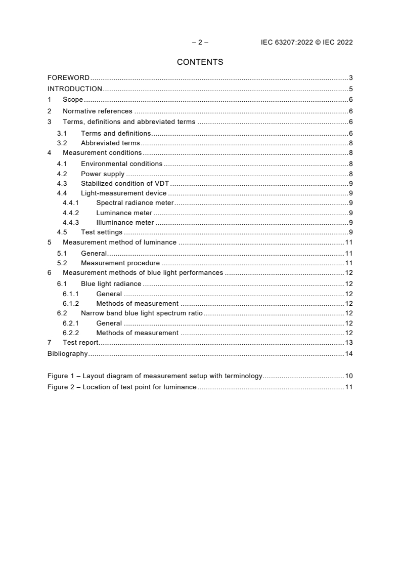 IEC 63207:2022 specifies measurement methods for optical performance (luminance) and blue light characteristics (BLCs) of visual display terminals (VDTs), excluding displays for outdoor use only.