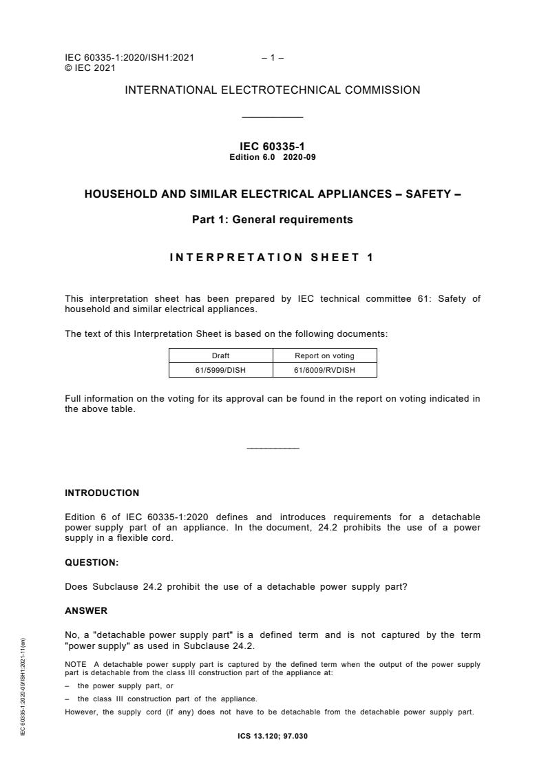 - IEC 60335-1 (Safety of household and similar electrical appliances - General requirements) - to be used in conjunction with this Part 2.