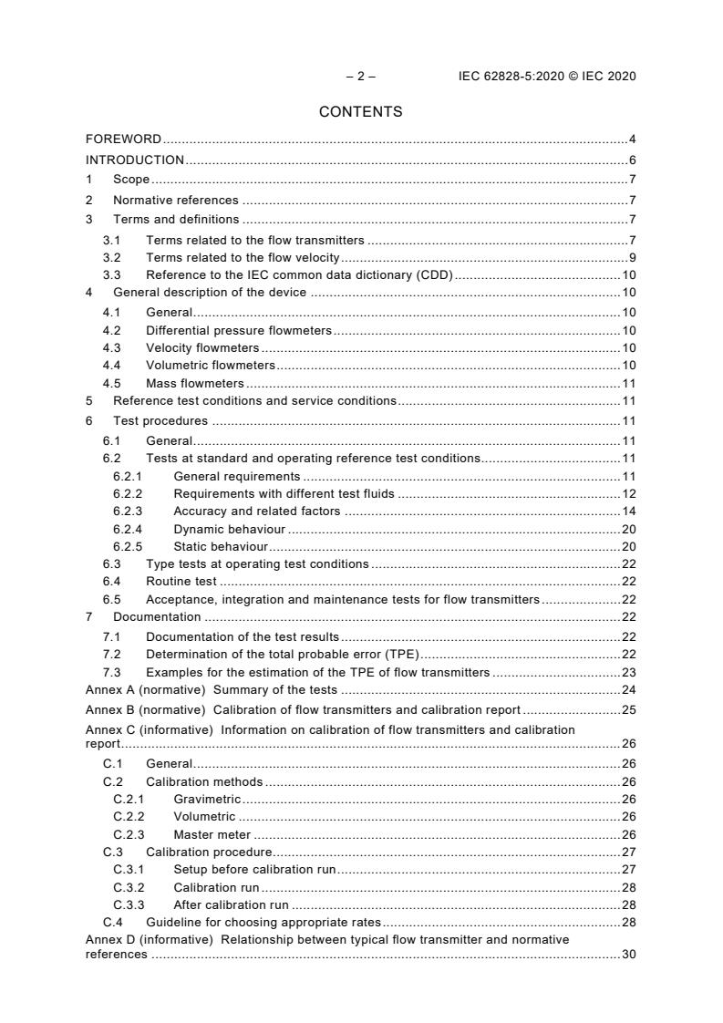 IEC 62828-5:2020 is a standard published by the International Electrotechnical Commission (IEC). Its full title is "Reference conditions and procedures for testing industrial and process measurement transmitters - Part 5: Specific procedures for flow transmitters". This standard covers: IEC 62828-5:2020 establishes specific procedures for testing flow transmitters used in measuring and control systems for industrial process and for machinery control systems. For general test procedures, reference is to be made to IEC 62828-1:2017, applicable to all types of industrial and process measurement transmitters. This document – together with IEC 62828-1:2017 – is the reference standard for testing every type of flow transmitter, not only for liquids but also for gases and for steam. In this document, "industrial flow transmitters" consistently covers all types of flow transmitters used in measuring and control systems for industrial process and for machinery.