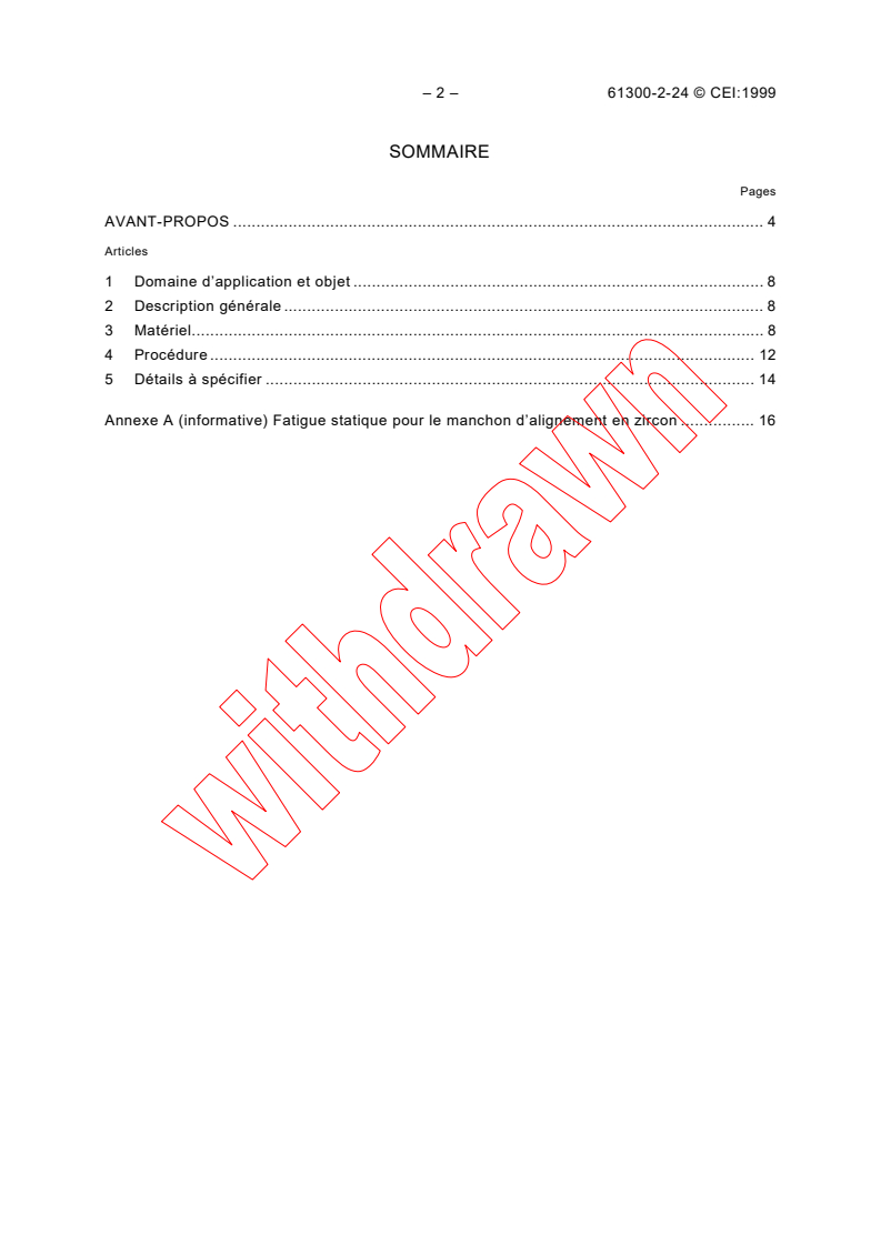 IEC 61300-2-24:1999 - Fibre optic interconnecting devices and passive components - Basic tests and measurement procedures - Part 2-24: Tests - Screen testing of ceramic alignment split sleeve by stress application Released:10/29/1999 Isbn:2831849799
