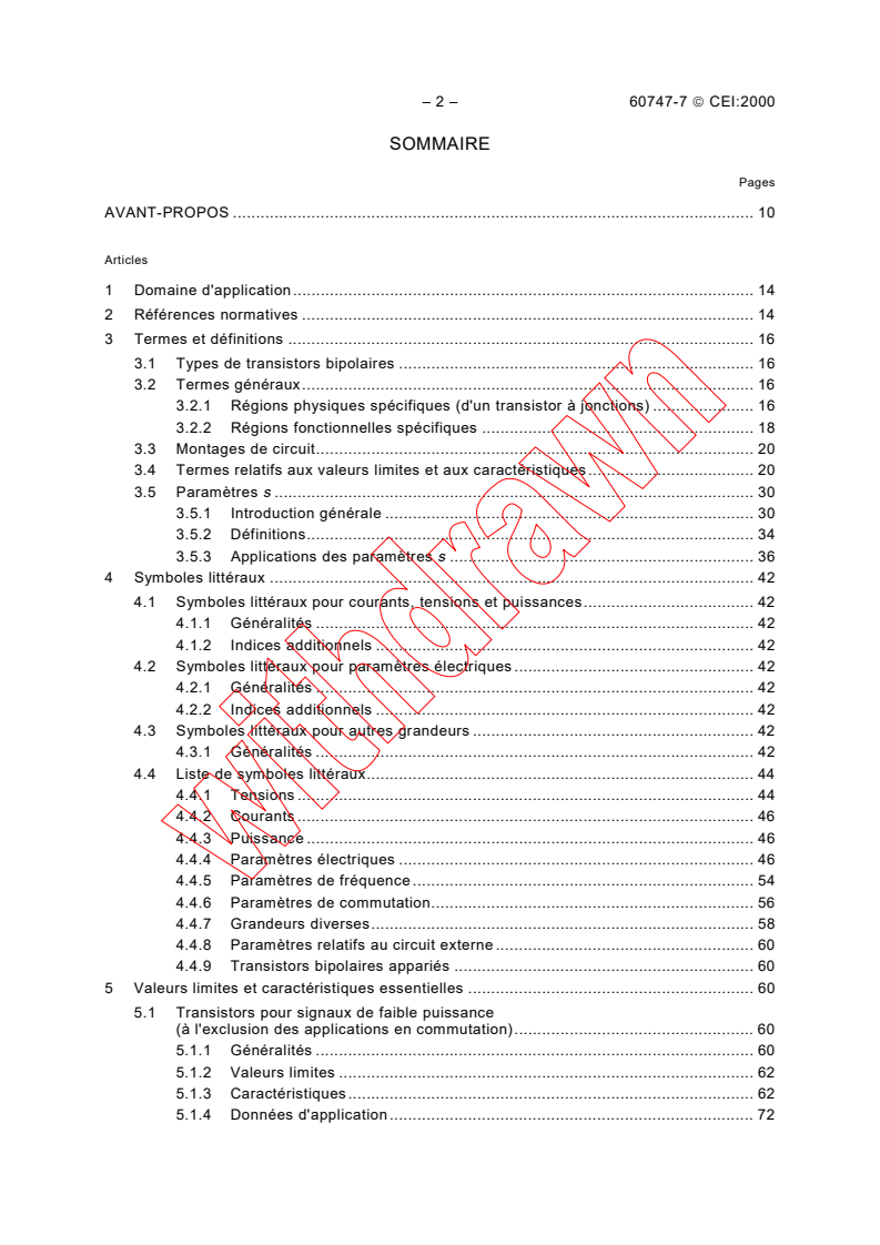 IEC 60747-7:2000 is an international standard issued by the International Electrotechnical Commission (IEC) that defines the requirements, parameters, and testing methods for bipolar transistors. This standard is part 7 of the IEC 60747 series focused on semiconductor discrete devices and integrated circuits. It covers various sub-categories of bipolar transistors, including:
