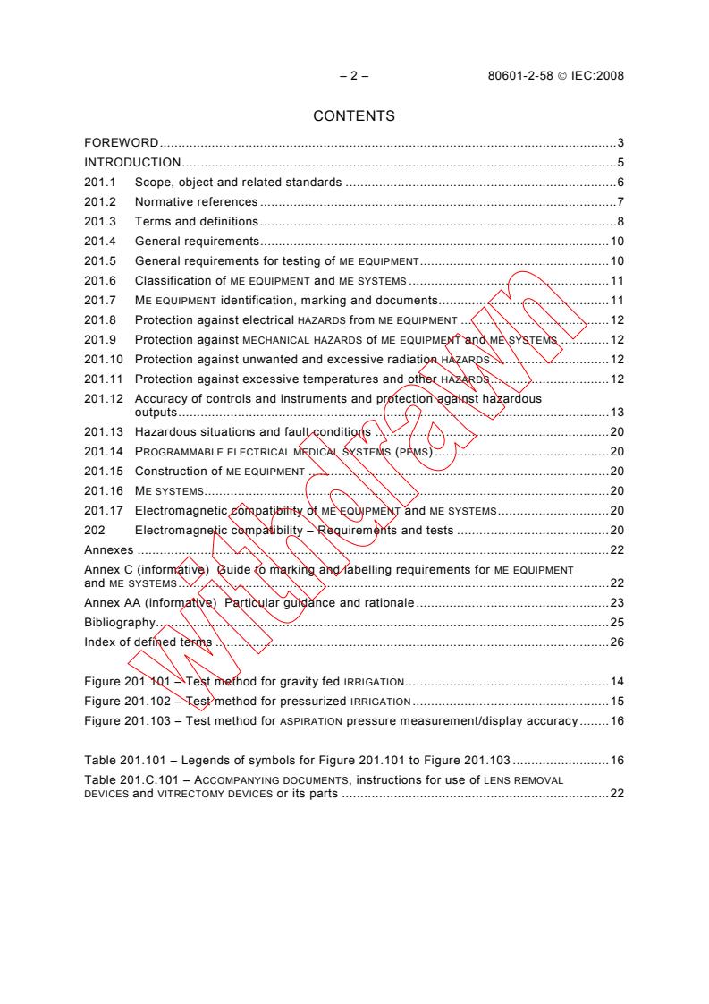 IEC 80601-2-58:2008 applies to the basic safety and essential performance of lens removal devices and vitrectomy devices for ophthalmic surgery and associated accessories that can be connected to this medical electrical equipment.
