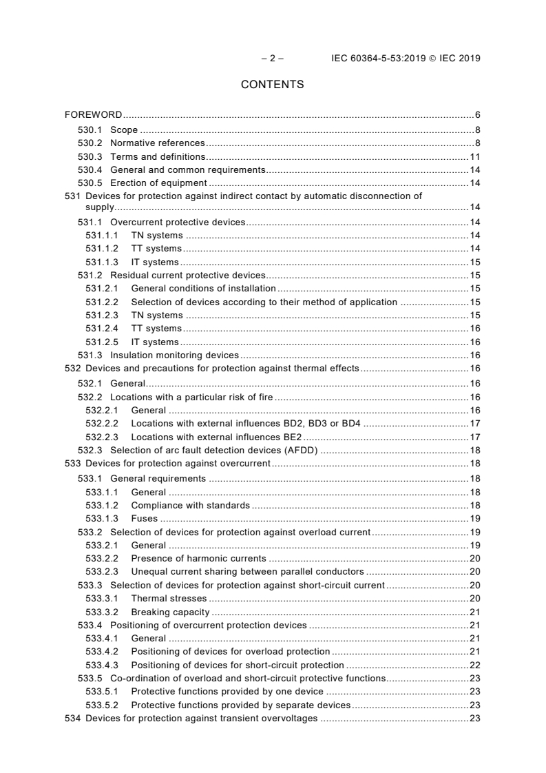 This part is one element of the IEC 60364 family (low-voltage electrical installations) and references device-specific standards and normative references consolidated in Clause 530. For complete compliance, consult related parts of IEC 60364 and the referenced device standards.