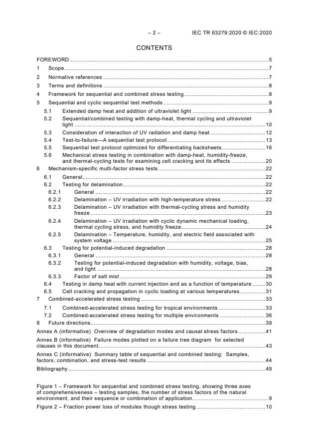 IEC TR 63279:2020은 광전지 모듈의 가속화된 스트레스 테스트에 대한 연구를 검토한다. 이러한 테스트는 현장에서 발견되는 광전지 모듈의 감해 모드를 단일 요인과 정상 상태 테스트에서 확인할 수 없는 경우를 확인하기 위한 것이다. 이 문서는 데이터와 이론에 기반한 동기를 제공하며 개선된 가속화된 스트레스 테스트 방법의 다음 단계를 시각화하는 데 도움을 준다. 신뢰성이 높아지면서 위험이 줄어들어 광전지 모듈의 재료와 설계의 위험을 감소시킬 수 있다. 더 낮은 비용은 전력의 레벨을 낮출 것이며 이는 광전지의 빠른 도입과 재생 에너지의 혜택을 가져올 것이다.