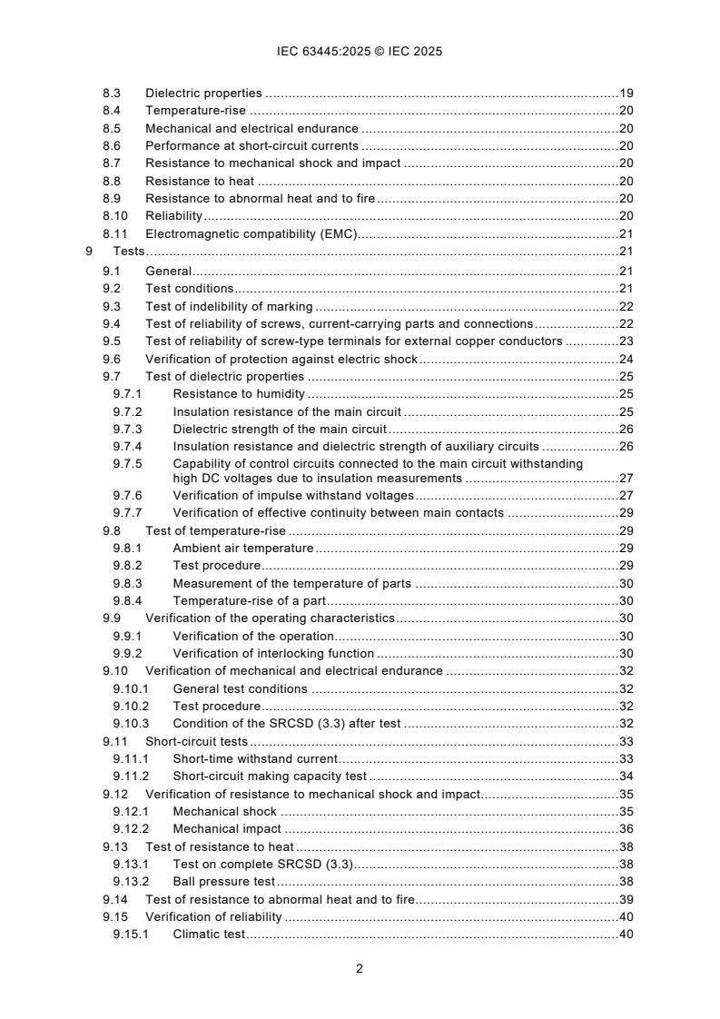 - Mechanical and electrical endurance, short‑circuit tests, temperature and fire resistance