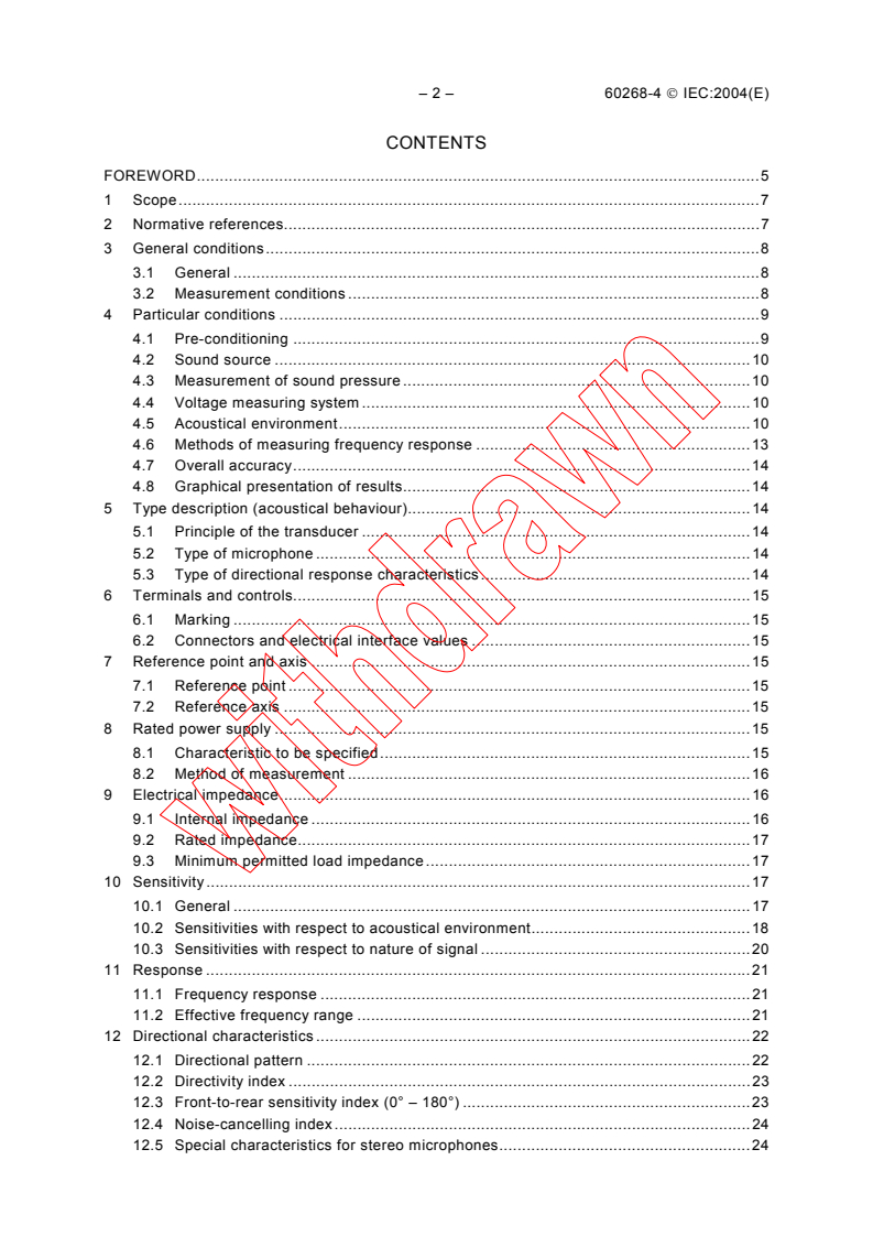 Keywords: IEC 60268-4:2004, microphone measurement standard, sound system microphones, sensitivity, impedance, frequency response, directional pattern, dynamic range, external influences.