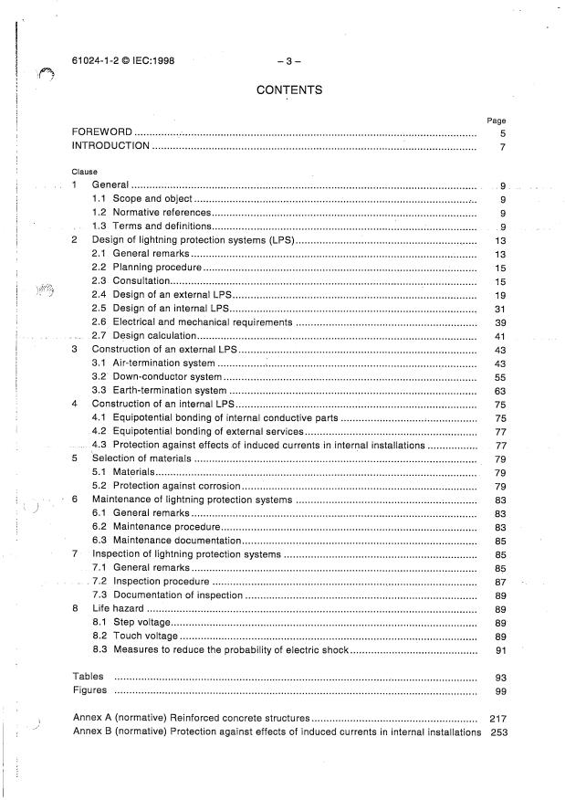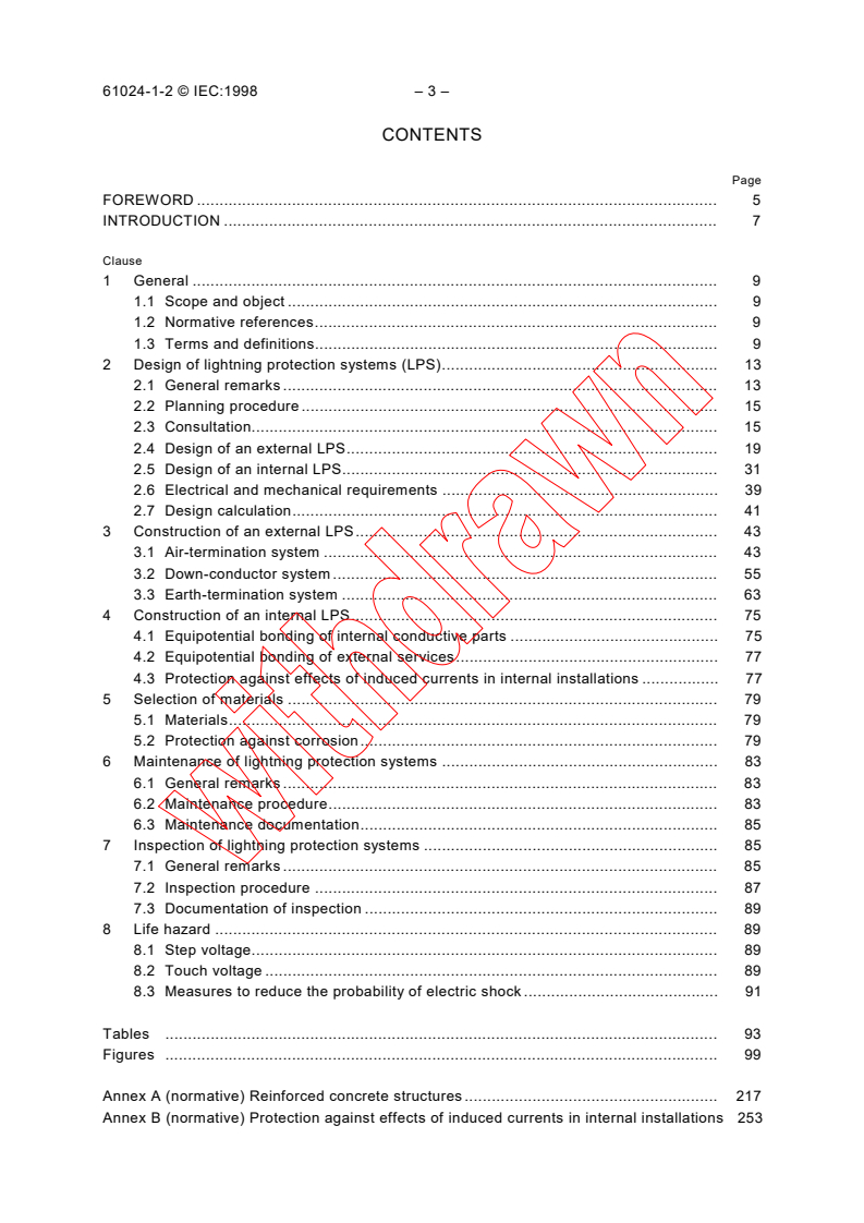 IEC 61024-1-2:1998 is a standard published by the International Electrotechnical Commission (IEC). Its full title is "Protection of structures against lightning - Part 1-2: General principles - Guide B - Design, installation, maintenance and inspection of lightning protection systems". This standard covers: Applicable to the design and installation of Lightning Protection Systems (SPS) for common structures up to 60 m high, in accordance with IEC 61024-1. Provides guidelines on how to use IEC 61024-1 and assists the user with the physical design and construction, maintenance and inspection of an LPS