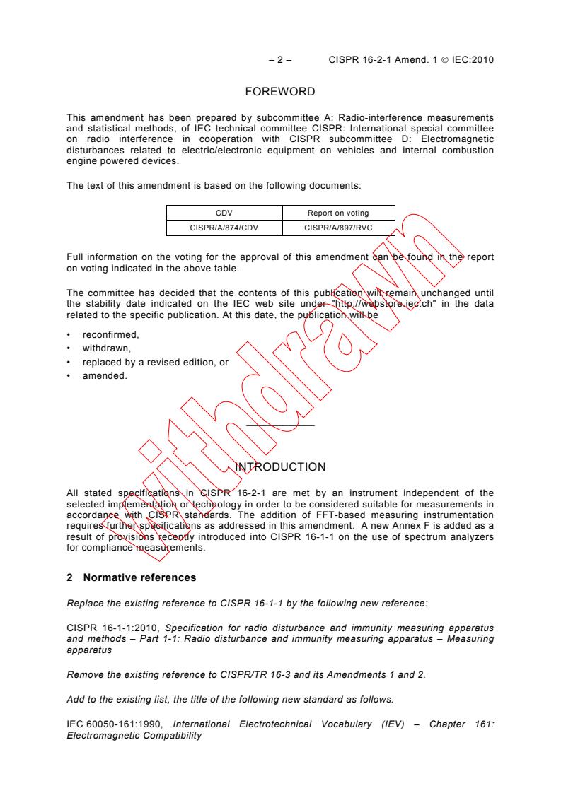 Keywords: CISPR 16-2-1 Amendment 1, conducted disturbance measurements, radio disturbance, immunity measuring apparatus, FFT-based measurement, electromagnetic compatibility, EMC testing, conducted emissions, CISPR standards, IEC standards, reference ground plane, weighting detector, artificial access network.