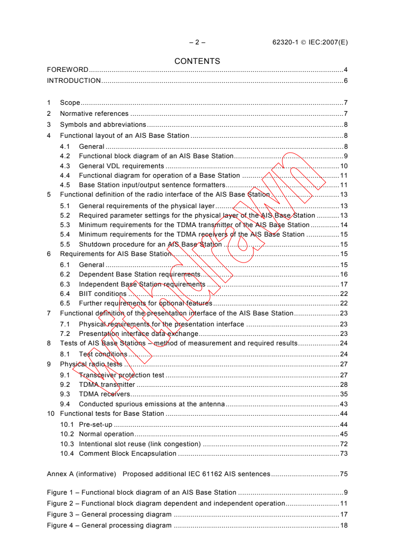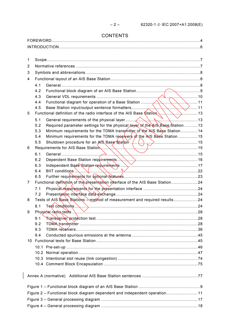 • Functional definitions for AIS Base Stations including physical, radio and presentation interfaces (Clauses 4–7).