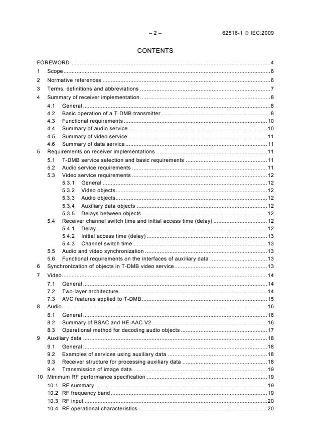 - Scope and normative references: Establishes required references (e.g., MPEG, AVC/H.264, JPEG2000 and DAB-related ETSI/IEC documents) that underpin T‑DMB receiver implementation.