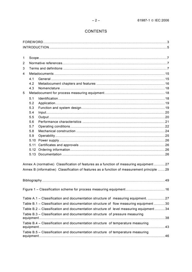 Table B.2 – Classification and documentation structure of level measuring equipment . 34