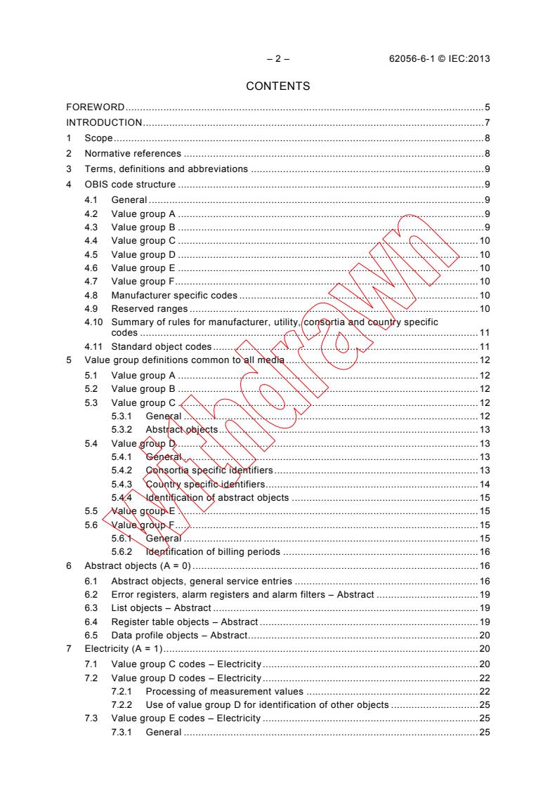 IEC 62056-6-1:2013 specifies the overall structure of the OBject Identification System (OBIS) and the mapping of all commonly used data items in metering equipment to their identification codes. OBIS provides a unique identifier for all data within the metering equipment, including not only measurement values, but also abstract values used for configuration or obtaining information about the behaviour of the metering equipment.