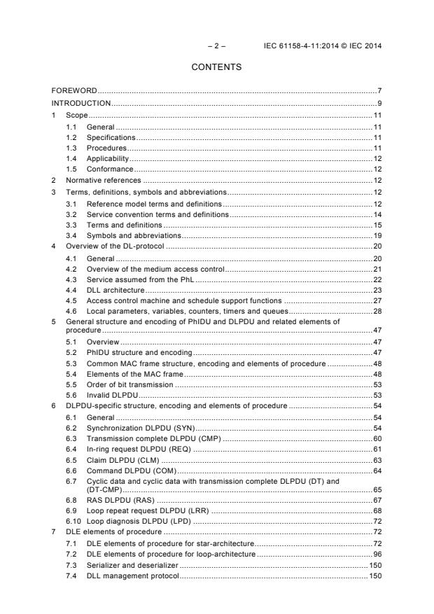 IEC 61158-4-11:2014 is a standard published by the International Electrotechnical Commission (IEC). Its full title is "Industrial communication networks - Fieldbus specifications - Part 4-11: Data-link layer protocol specificationn - Type 11 elements". This standard covers: IEC 61158-4-11:2014 specifies procedures for: the timely transfer of data and control information from one data-link user entity to a peer user entity, and among the data-link entities forming the distributed data-link service provider; procedures for giving communications opportunities to all participating DL entities, sequentially and in a cyclic manner for deterministic and synchronized transfer at cyclic intervals up to one millisecond; procedures for giving communication opportunities available for time-critical data transmission together with non-time-critical data transmission without prejudice to the time-critical data transmission; procedures for giving cyclic and acyclic communication opportunities for time-critical data transmission with prioritized access; procedures for giving communication opportunities based on standard ISO/IEC 8802-3 medium access control, with provisions for nodes to be added or removed during normal operation and the structure of the fieldbus DLPDUs used for the transfer of data and control information by the protocol of this standard, and their representation as physical interface data units. This third edition cancels and replaces the second edition published in 2010 and constitutes a technical revision. The main changes are: Subclauses 4.6.1, 4.6.4 and 5.4.6, Clause 6 and 7.2 for the loop-architecture are modified to cover the additional specifications for the higher data rate in the loop-architecture.