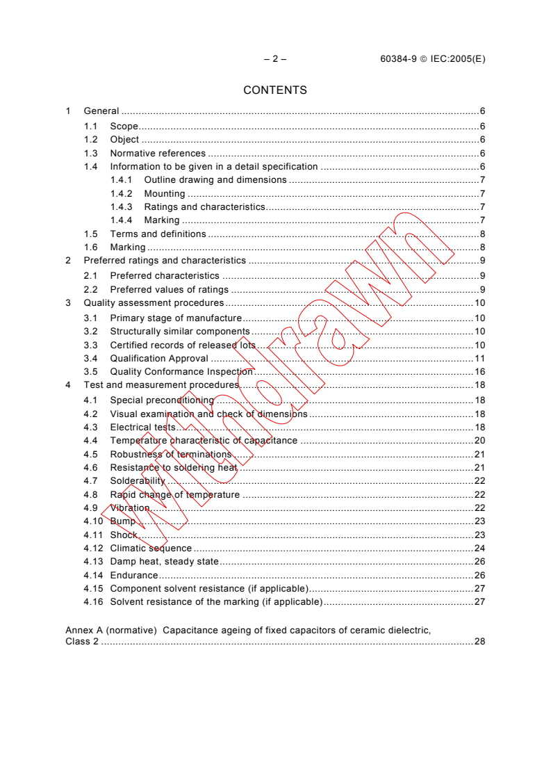 Keywords: IEC 60384-9:2005, fixed capacitors, ceramic dielectric Class 2, temperature coefficient, leadless capacitors, quality assessment procedures, capacitor testing, capacitance ageing.