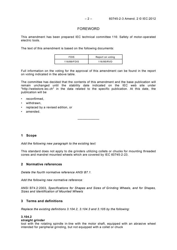 Amendment 2 - Hand-held motor-operated electric tools - Safety - Part 2-3: Particular requirements for grinders, polishers and disk-type sanders