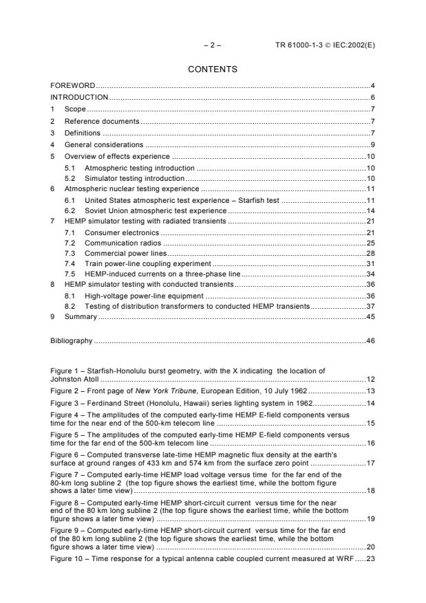 IEC TR 61000-1-3:2002 is an informative Technical Report from the International Electrotechnical Commission (IEC) that documents the observed and simulated effects of high‑altitude electromagnetic pulse (HEMP) on civil equipment and systems. It compiles experience from historic atmospheric nuclear tests (notably 1962 US and Soviet tests) and subsequent HEMP simulator testing worldwide. The report is a basic EMC publication intended to illustrate HEMP threats - including radiated and conducted transients - and to provide practical background for immunity verification and test planning.