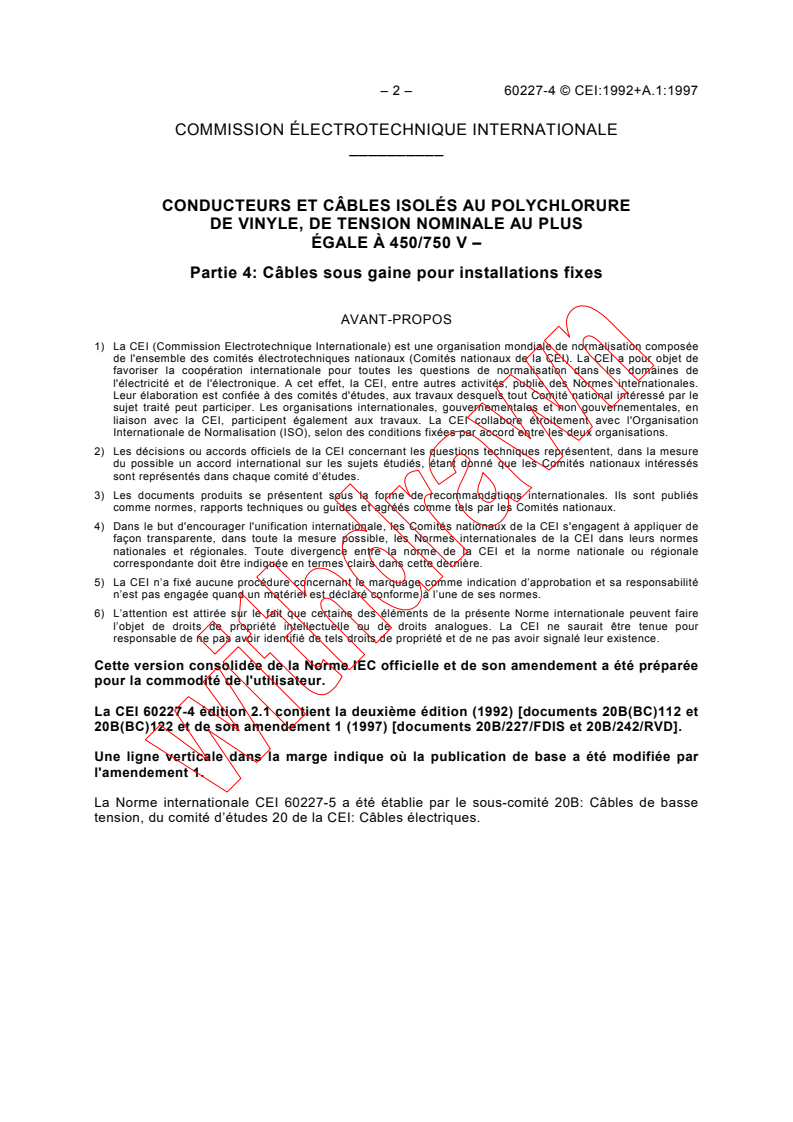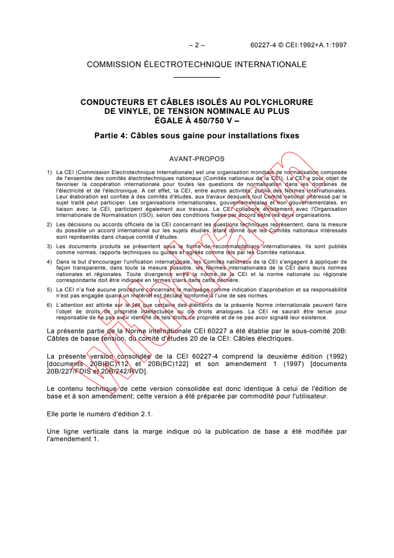 La CEI 60227-4 édition 2.1 contient la deuxième édition (1992) [documents 20B(BC)112 et