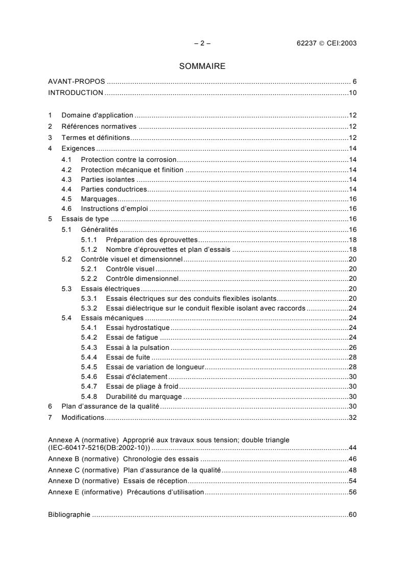 Est applicable aux conduits flexibles isolants avec raccords portables utilisés avec des outils et matériels hydrauliques pour travaux sous tension sur réseaux électriques à fréquence industrielle, de tension nominale supérieure à 1 kV efficace. Ces conduits flexibles isolants avec raccords sont utilisés pour effectuer la connexion entre l'outil hydraulique et la pompe qui sont à des potentiels différents. Ils ne sont pas considérés comme une partie fixe d'un dispositif pour travaux sous tension (par exemple l'élévateur). Ils peuvent être connectés et déconnectés sous une pression négligeable. Ils peuvent être manipulés directement par le travailleur.