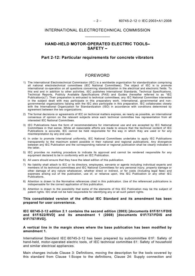 IEC 60745-2-12:2003+AMD1:2008 CSV - Hand-held motor-operated electric tools - Safety - Part 2-12: Particular requirements for concrete vibrators Released:17. 07. 2008