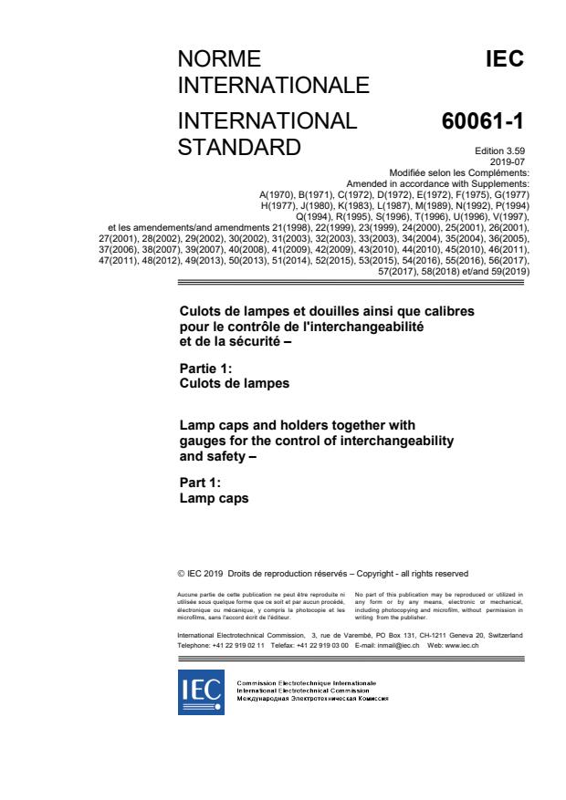 Amendment 59 - Lamp caps and holders together with gauges for the control of interchangeability and safety - Part 1: Lamps caps
