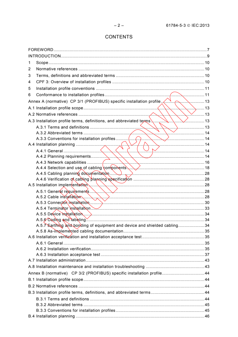 Detailed annexes within the standard provide installation profiles covering:- PROFIBUS variants (CP 3/1 and CP 3/2)