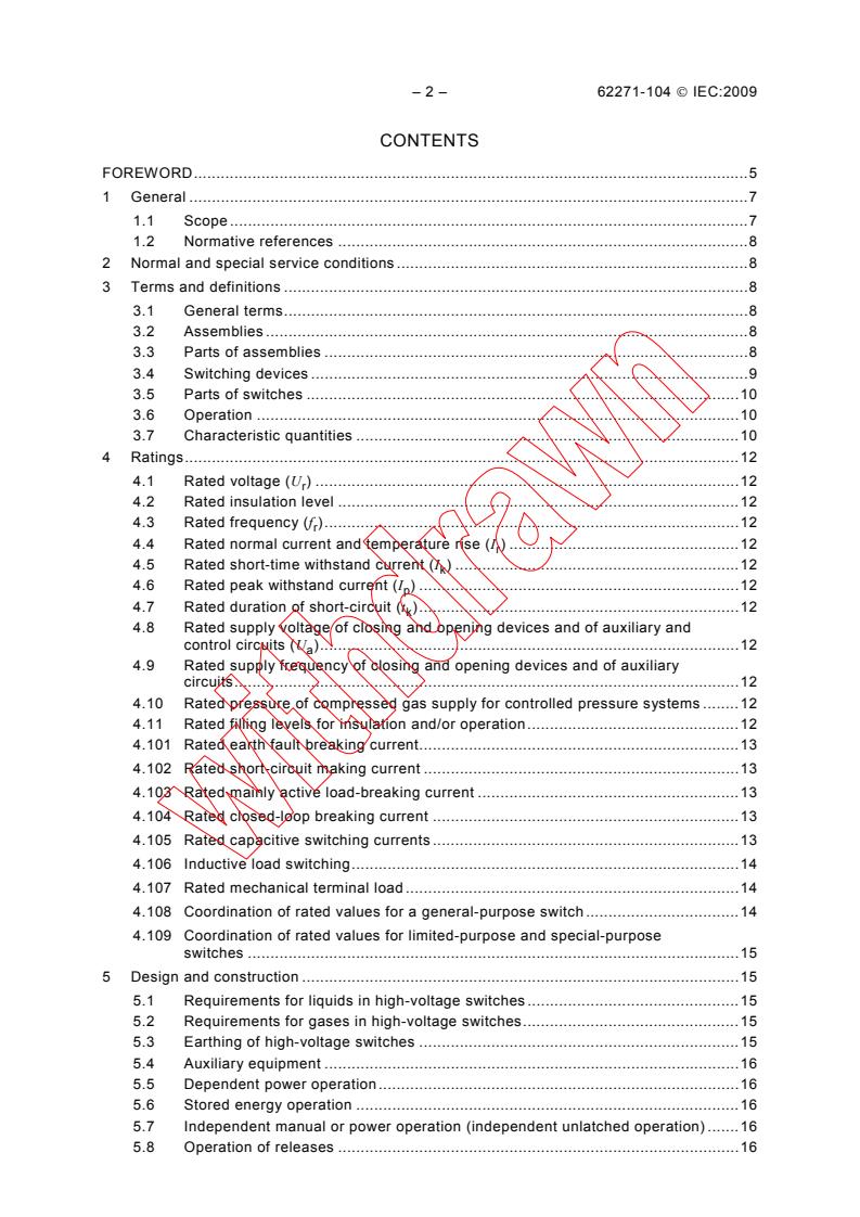 IEC 62271-104:2009 is an international standard developed by the International Electrotechnical Commission (IEC) that specifies the requirements for high-voltage alternating current (AC) switches rated at 52 kV and above. This standard covers three-pole AC switches used in indoor and outdoor installations for rated frequencies up to 60 Hz. It includes specifications for operating devices and auxiliary equipment associated with these switches. The primary goal of IEC 62271-104:2009 is to establish uniform performance criteria and testing methods for switches deployed in electrical transmission and distribution systems.