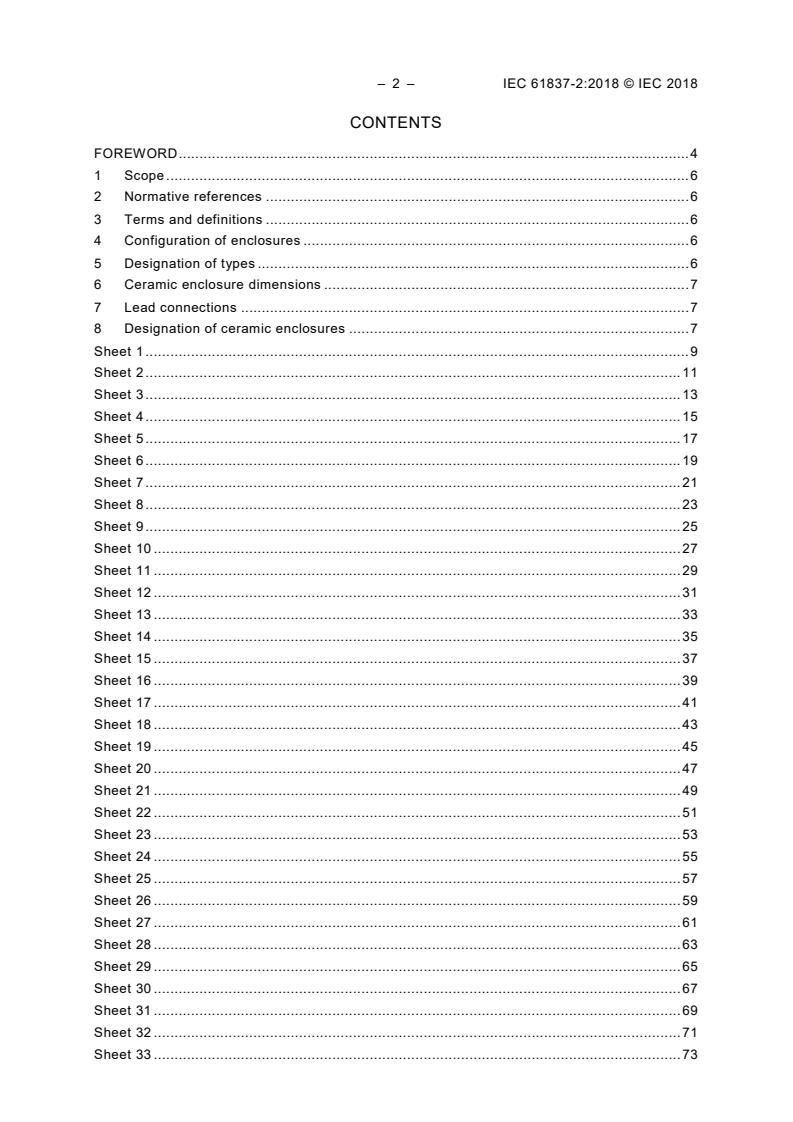 L’IEC 61837-2:2018 traite des encombrements normalisés et des connexions des sorties des dispositifs à montage en surface pour la commande et le choix de la fréquence applicables aux enveloppes en céramique, et est basée sur l’IEC 61240:2016.