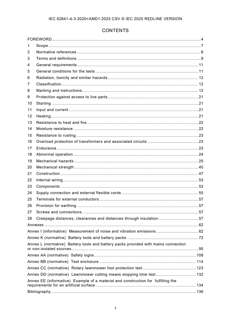 The document is part of the IEC 62841 series (electric motor‑operated hand‑held and transportable tools and lawn & garden machinery - Safety) and consolidates the first edition (2020) with a 2025 amendment.