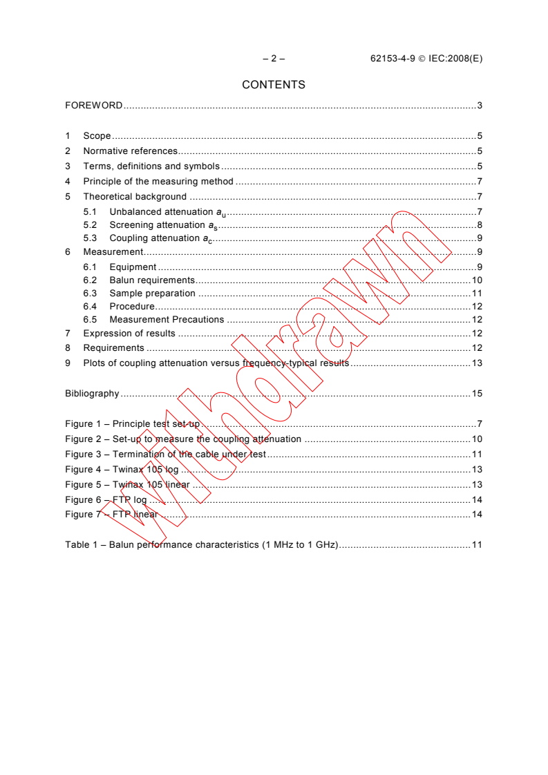 - Procedure and calibration: Measurement steps, sample preparation, balun requirements and precautions are defined. Results are expressed as coupling attenuation versus frequency and compared to required limits.