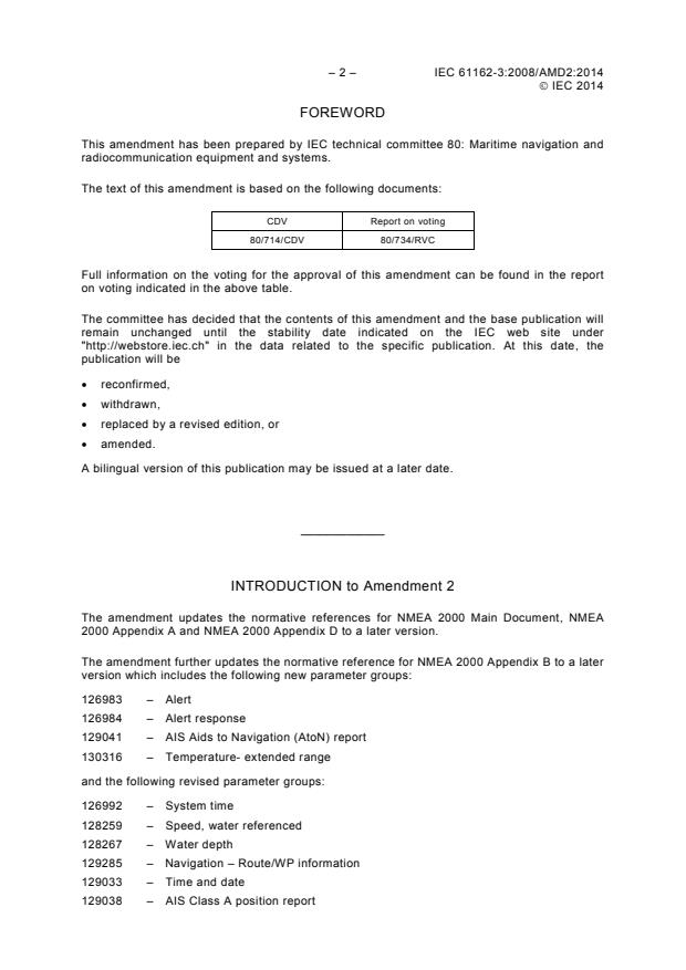 IEC 61162-3:2008/AMD2:2014 - Amendment 2 - Maritime navigation and radiocommunication equipment and systems - Digital interfaces - Part 3: Serial data instrument network
