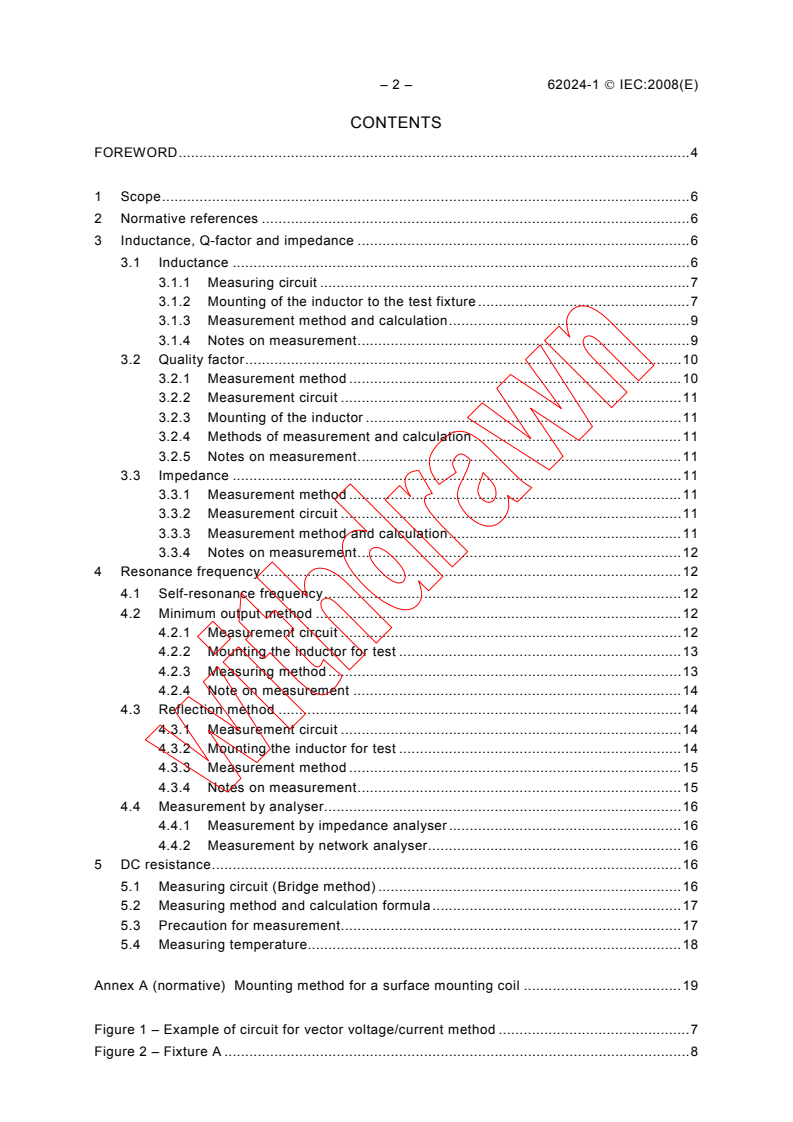 La CEI 62024-1:2008 spécifie les caractéristiques électriques et les méthodes de mesure pour l'inductance pastille de l'ordre du nanohenry qui est normalement utilisée dans la gamme des hautes fréquences (supérieures à 100 kHz). Par rapport à l'édition précédente, les principales modifications techniques sont les suivantes: