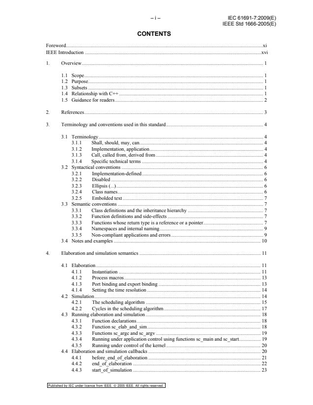 IEC 61691-7:2009 is a standard published by the International Electrotechnical Commission (IEC). Its full title is "Behavioural languages - Part 7: SystemC R Language Reference Manual". This standard covers: IEC 61691-7:2009(E) defines SystemC®1 as an ANSI standard C++ class library for system and hardware design. The specific purpose is to provide a precise and complete defination of the System C class library so that a System C implementation can be developed.