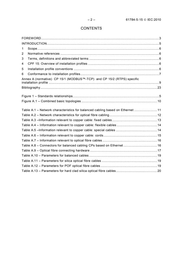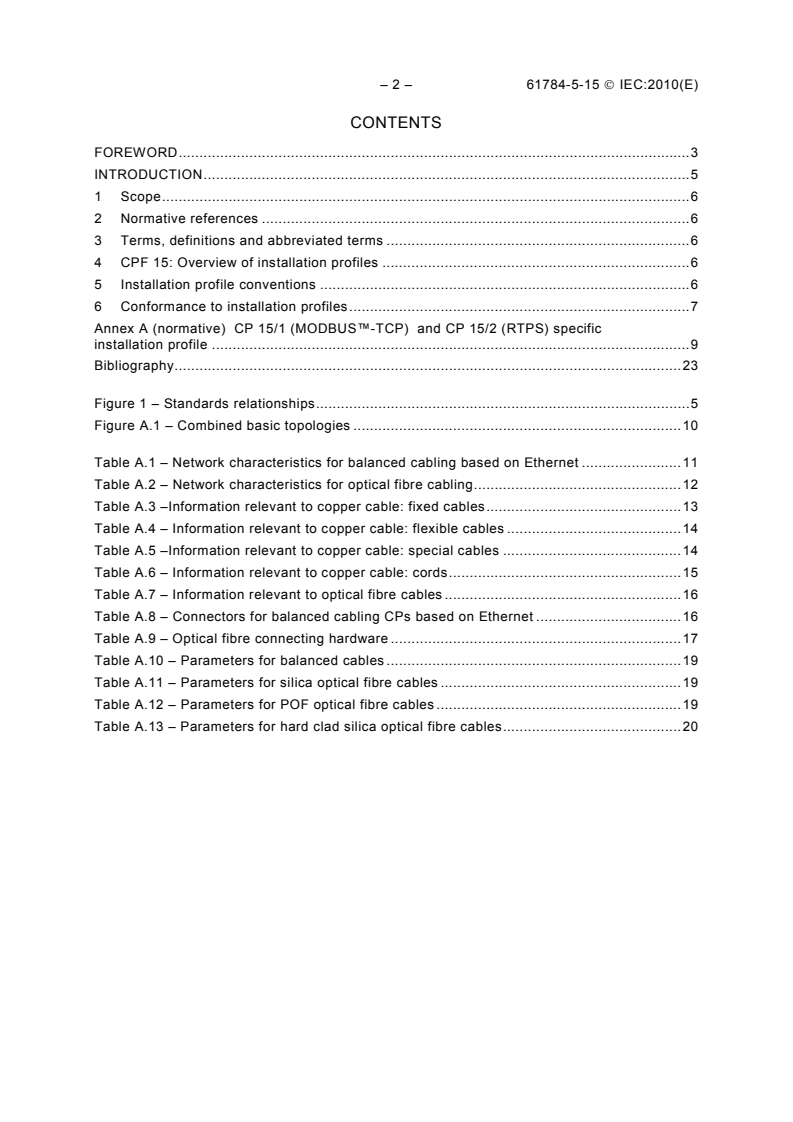 Keywords: IEC 61784-5-15, CPF 15, MODBUS-TCP, RTPS, installation profiles, industrial communication networks, fieldbus installation, IEC 61918, cabling, Ethernet, optical fibre.
