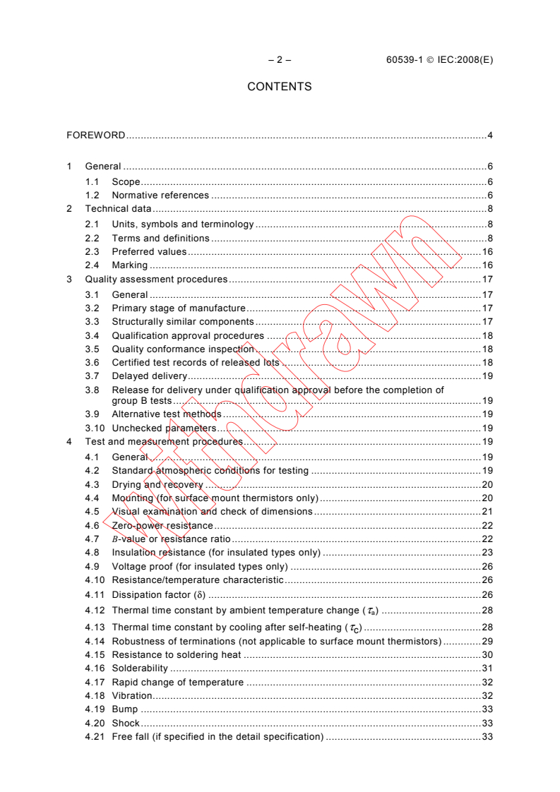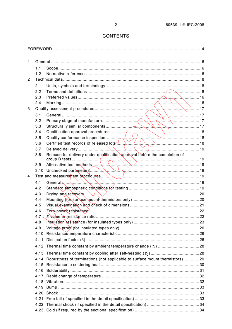 Keywords: IEC 60539-1:2008, NTC thermistors, directly heated thermistors, test procedures, quality assessment, resistance–temperature characteristic, dissipation factor, thermal time constant.